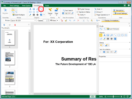 This operation can also be performed with the tool buttons on the toolbar. If tool buttons are not displayed on the toolbar of Desktop Editor, see the following to display them.