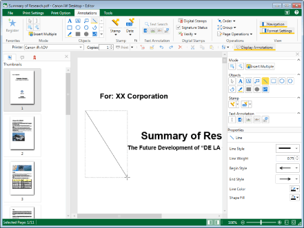 You can insert horizontal lines, vertical lines, and lines at 45 degree angles by dragging the mouse pointer while holding down the [Shift] key on the keyboard.