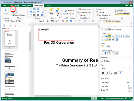 This operation can also be performed with the tool buttons on the toolbar. If tool buttons are not displayed on the toolbar of Desktop Editor, see the following to display them.