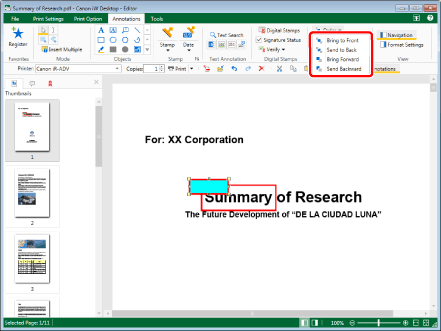 When the following PDF documents are displayed in another application, digital stamps may be displayed in front of annotations, regardless of the overlapping order on the Desktop Editor.