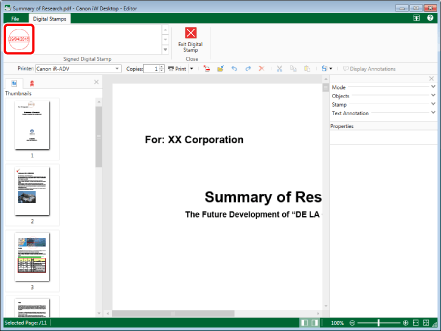 The [Annotation List] tab on the Navigation Window is hidden while the Digital Stamps Mode is running.