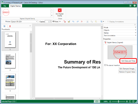 You cannot click [Edit Date and Time] for a digital stamp that does not contain a date. For information on adding a date to a digital stamp, see the following.