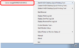 Right-click (Main) on the Taskbar, select [Start iR-ADV Desktop Quick Printing Tool], and select Quick Printing Tool to start.