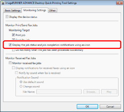 Only the print/fax transmission job status of devices that have had their information retrieved can be monitored by the Quick Printing Tool. Device information is automatically retrieved when Desktop Monitor Setup is started.