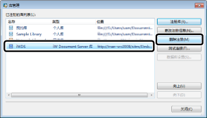 从 [已注册的库列表] 中选择要删除注册的库,然后单击 [删除注册]。