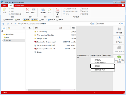 可以删除在Desktop Browser屏幕的输出栏中注册的传真输出按钮。