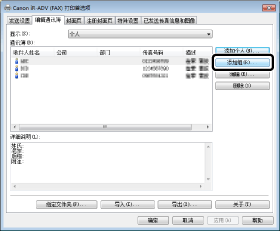 若在使用 [Canon Generic FAX Driver],请在 [选择收件人] 选项卡中单击 [编辑地址簿],然后再单击显示的 [编辑地址簿] 对话框中的 [添加个人]。
