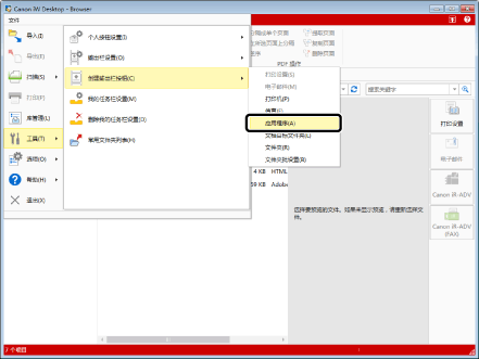 在 [应用程序设置] 对话框中指定要注册到输出栏中的外部应用程序。