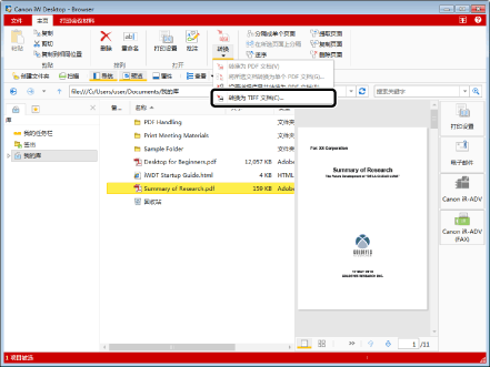 ,并选择[转换为 TIFF 文档]。