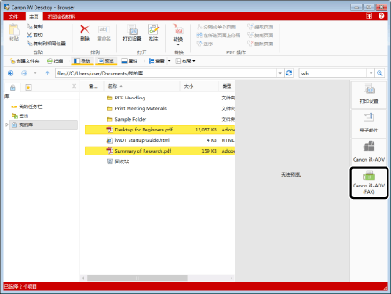 要从Desktop Browser屏幕的输出栏通过传真发送文档,需要先在输出栏中注册传真输出按钮。并且,要将多个文档作为单个文档传真,必须在传真输出按钮设置中选中[用 Editor 将所选文档合并为一个以发送传真]。有关注册和设置按钮的信息,请参阅下列内容。