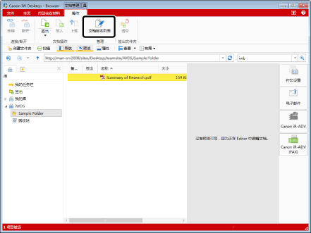 该操作也可用工具栏上的工具按钮执行。如果Desktop Browser工具栏上不显示工具按钮,请参阅以下内容使其显示。