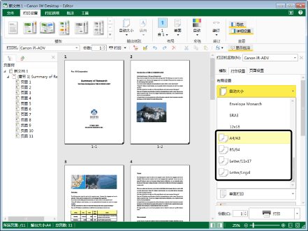如果在页面布局设置中选择了 [1 合 1] 之外的选项,则使用页面最原始的纸张大小。