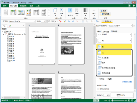 折叠模式可选项会因 [打印机] 中选择的打印机而异。