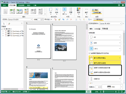 如果在详情窗口、功能区命令或工具按钮中的[打印设置]选项卡上取消选中[使用 Editor 的打印设置]复选框,则无法使用[在章节分隔符处更改纸张]。