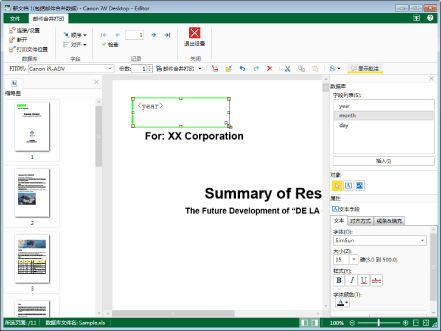可以调整在 Desktop Editor 中插入的邮件合并域的大小。