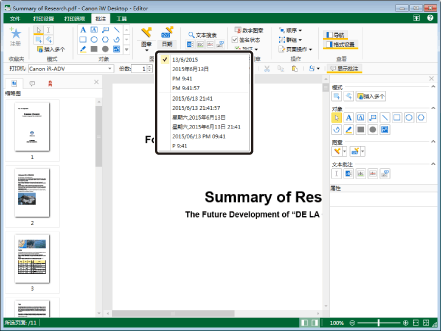 如果单击该选项,则显示[编辑日期和时间]对话框。可以在[编辑日期和时间] 对话框中编辑日期显示格式。更多详细信息,请参阅以下内容。