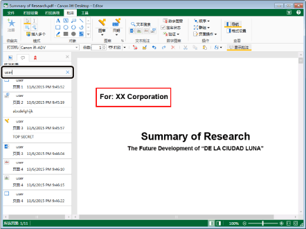 当批注隐藏时,无法从导航窗口的[批注列表]选项卡搜索批注。有关如何显示/搜索批注的信息,请参阅下列内容。