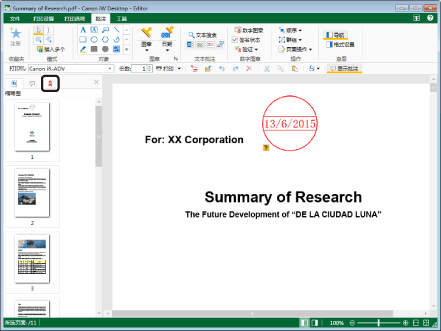 如果从当前页面之外的其他页面选择数字图章,则工作窗口显示会切换到该数字图章所在的页面。