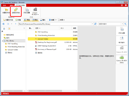 如果希望选择未连接的Document Server库,或者选择需要验证的网络驱动器上库中的文件夹,则需要连接到库。有关连接的详细信息,请参阅下列内容。