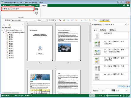 當您指定 Canon 印表機時,Desktop Editor 會擷取指定的印表機的資訊,且只顯示指定的印表機所支援的項目。