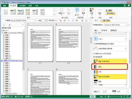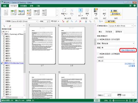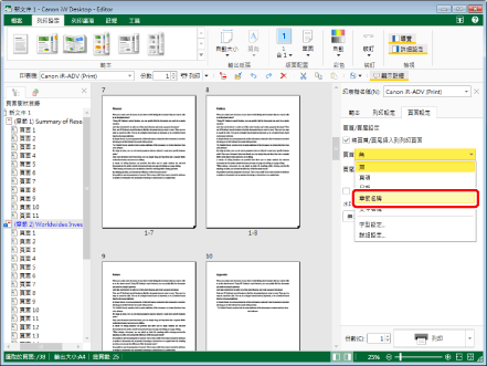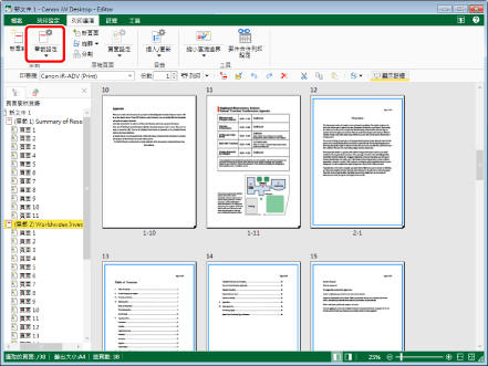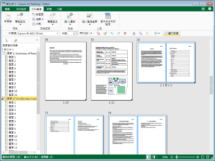 Desktop Editor 可依章節或頁面指定專用設定、設定頁碼及建立目錄等。您可輕鬆將文件合併成結構一致的 IWB 文件,使辦公作業更具效率。