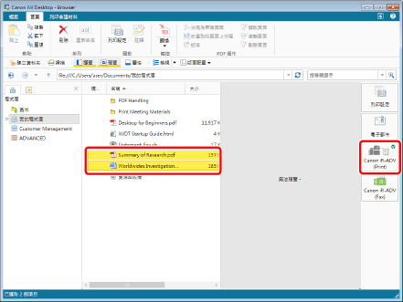 選取要列印的文件,然後按一下印表機輸出按鈕。