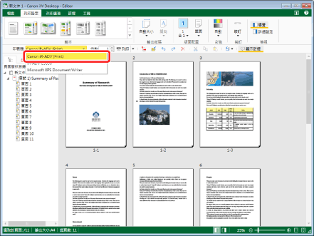 如果在印表機輸出按鈕設定中選取「列印前用 Editor 檢查預覽」,此時便會啟動 Desktop Editor。