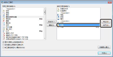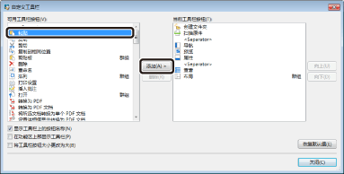 如果在选择了[当前工具栏按钮]中某个按钮后单击了[添加],则在[可用工具栏按钮]中选择的按钮会添加至所选按钮之下。