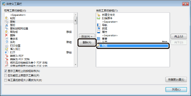 如要将工具栏上显示按钮恢复至默认设置,可单击[恢复默认值]。