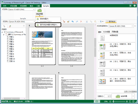 如果使用一个IWB文档,则在发送传真时使用保存在IWB文档中的打印设置。有关打印设置的详细信息,请参阅下列内容。