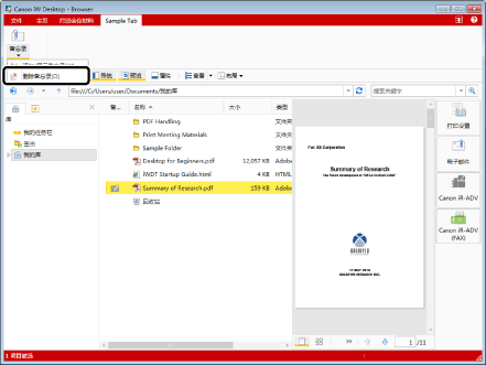 在文件列表视图窗口中选择文档。