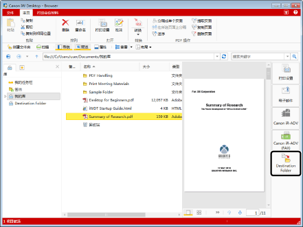 如在未选择文档的情况下执行以下操作之一,会在导航窗口上选择文档目标文件夹,也可在文件列表视图窗口中检视文档目标文件夹中的文件夹和文档。