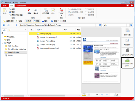 如果选择多个文档,则无法使用 [打印]。但可以使用传真输出按钮来传真文档。