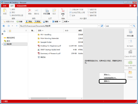 或者,选择 [文件] 菜单 > [工具] > [输出栏设置] >(文件夹名称)> [删除]。