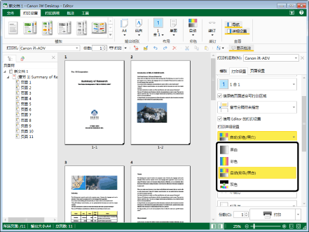 如果 [打印机] 中选择的 Canon 打印机不支持彩色打印,则无法指定色彩模式。
