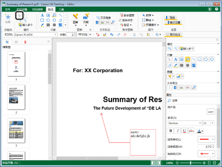显示[系统设置]的[批注属性] 中设置的用户名。有关更改用户名的详细信息,请参阅下列内容。