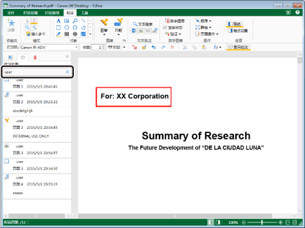 当批注隐藏时,无法从导航窗口的[批注列表]选项卡搜索批注。有关如何显示/搜索批注的信息,请参阅下列内容。
