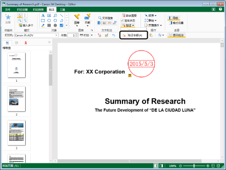 当添加数字图章之后已执行编辑(如添加批注)时(已编辑)