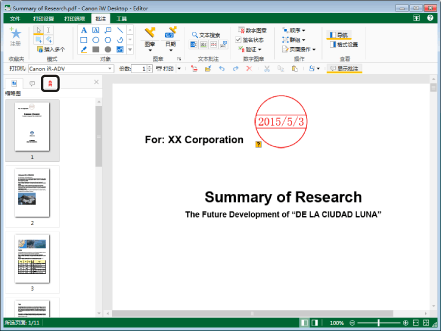 如果从当前页面之外的其他页面选择数字图章,则工作窗口显示会切换到该数字图章所在的页面。
