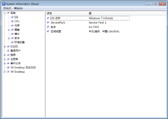 在树视图中显示System Information Viewer获取的环境信息项目。