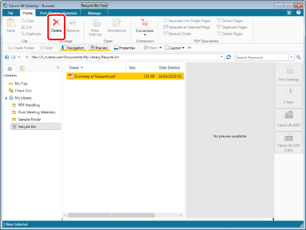 The Recycle Bin cannot be used for a Document Server Library unless you have edit permission or higher.