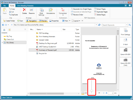 If you want to specify the magnification factor, enter it directly into [Zoom]. You can enter the magnification factor in 1% increments. If you enter a value greater than the upper limit or smaller than the lower limit, pages are automatically displayed at the available magnification factor closest to the value you specified (if a value other than an integer is entered, the previous value is restored).