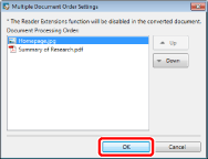 When inconvertible documents are included in the selected documents, documents which cannot be converted and an error message are displayed.