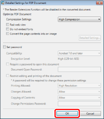 The values set in the [Detailed Settings for PDF Document] dialog box are retained for next time.