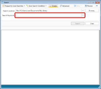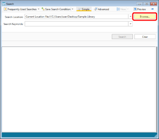 The path of the search target library or folder is displayed in [Search Location] on the Search Screen.