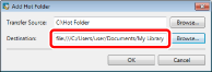 You can select a folder stored in a library in the [Browse] dialog box that is displayed when [Browse] is clicked. Alternatively, in the [Browse] dialog box, you can create a new folder in a library and select it.
