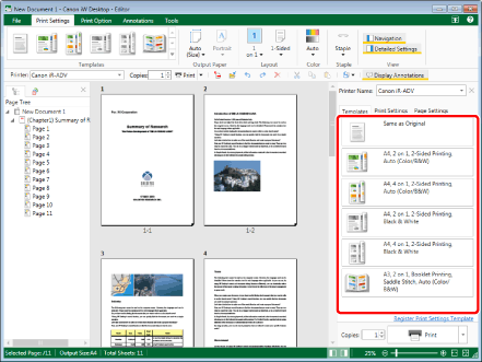Registering Frequently Used Print Settings in a Template