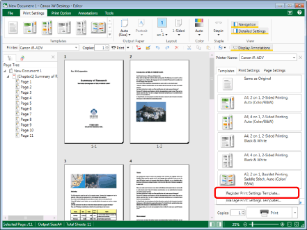 Click [Register Print Settings Template] on the [Templates] tab on the Details Window