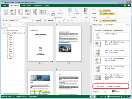 Select the [File] menu > [Settings/Management] > [Manage Print Settings Templates]