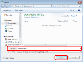 You can register a template by importing an exported Canon Desktop Document Template file. By using the import and export functions, you can also share the print settings of fixed documents.